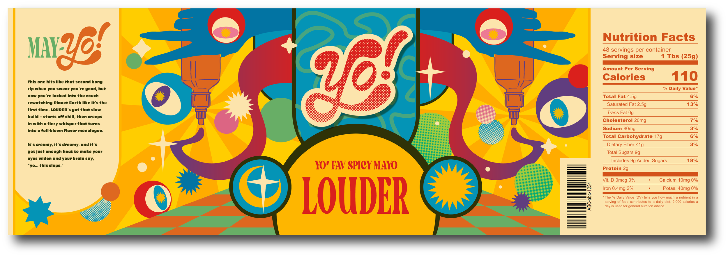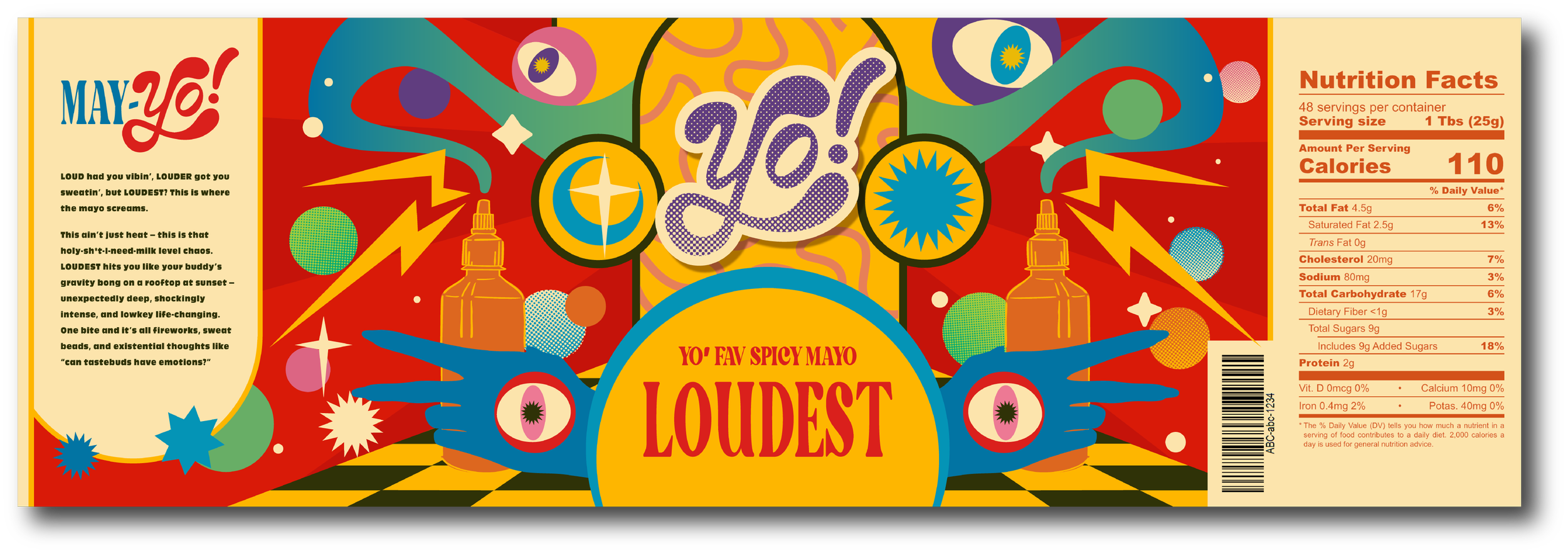 This fictional condiment brand is born from my love of spicy mayo and the 70’s. Located in Colorado and made for the late-night snackers, YO! is all about turning up the flavor with a playful twist — the louder the spice, the hotter the hit.